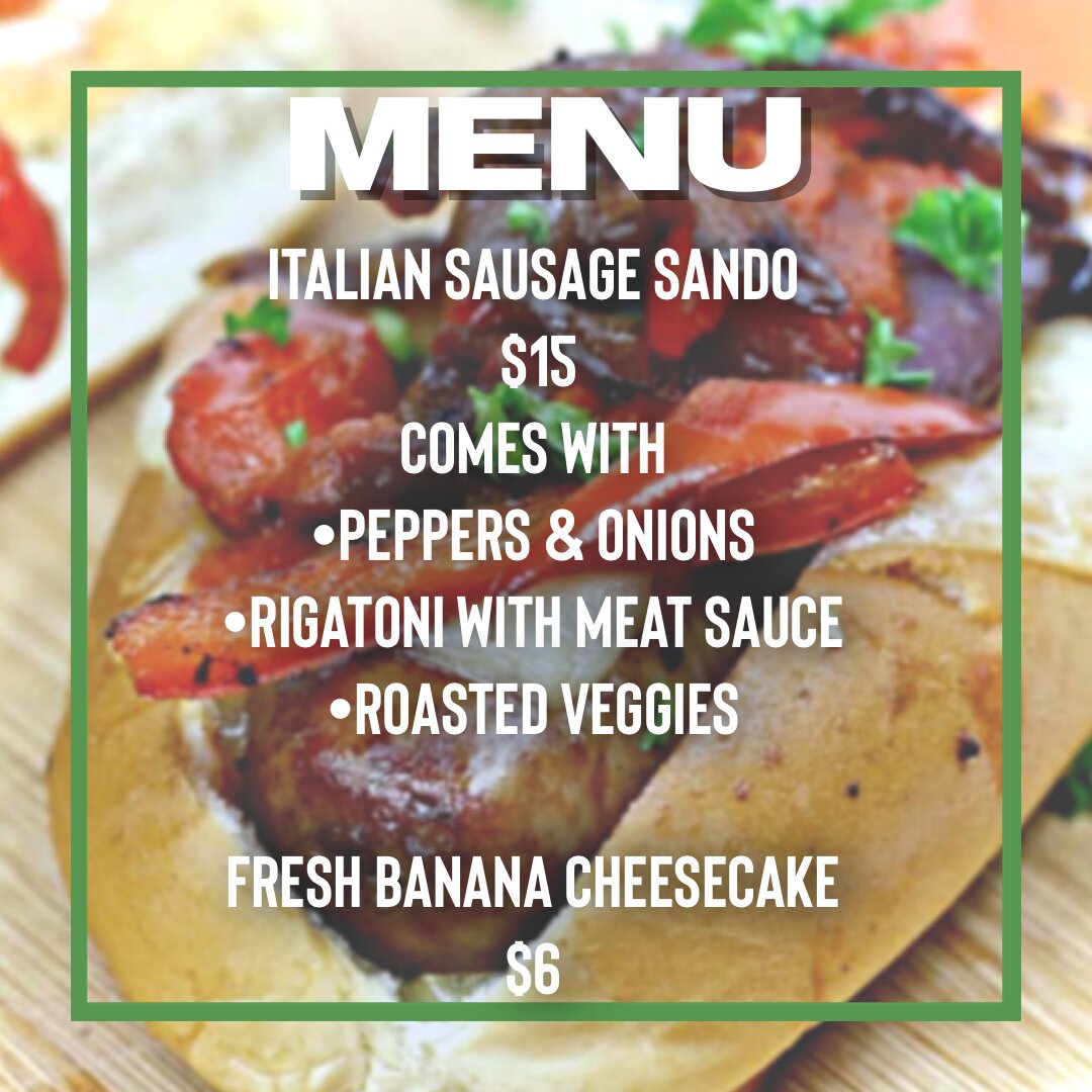 ***All deliveries on Thursday the 19th*** A classic Italian sausage grilled with peppers and onions of course a bun included. Comes with a side of rigatoni and meat sauce and roasted veggies