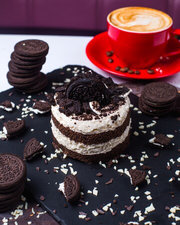 Moist Chocolate cake with pudding Oreo frosting and Oreos.